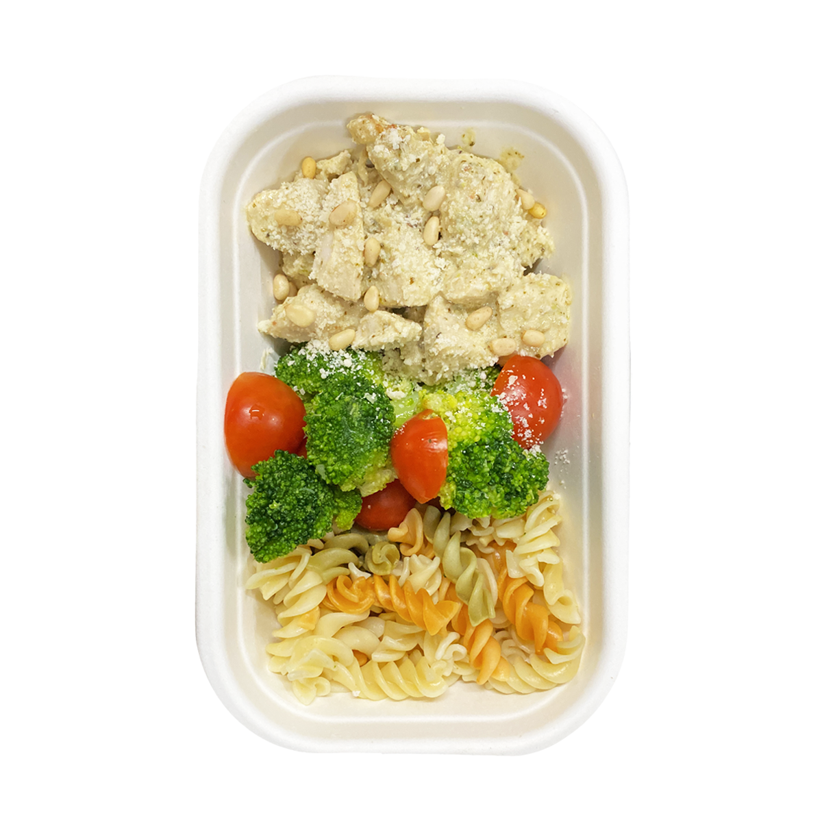 Chicken Pesto Pasta met fusili ,courgette, cherry tomaatjes en roosjes broccoli