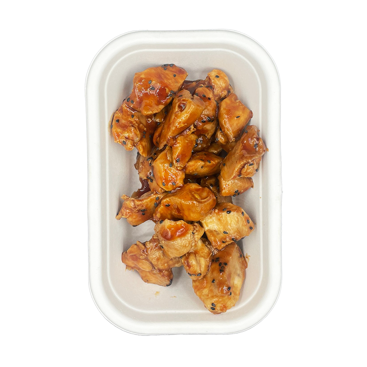 Ingrediënten: Gemarineerde kipfiletblokjes 67,5%sojasaus (water, soja, zout, suiker, tarwebloem), olie (70% geraffineerde sojaolie, 30% sesamolie), knoflookpoeder, uienpoeder, zwarte peper),saus (32,5) (honing (5,8%), sojasaus (water, soja, zout, suiker, tarwebloem), ketchup (tomaten, azijn, suiker, zout, specerij- en kruidextracten (selderij), specerij), knoflook, aardappelzetmeel).